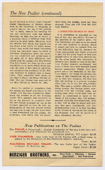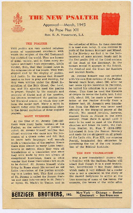 - Pius XII Psalter gives the option of using the Pius XII/Augustin Cardinal Bea Latin translation of the psalms. More information on this psalter is available here and here.
